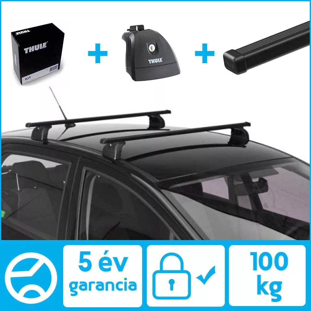 A tetőcsomagtartó rudak két végén található kiképzett nútba illeszthető a Thule Rapid System tetőcsomagtartó láb és rögzítő kit.