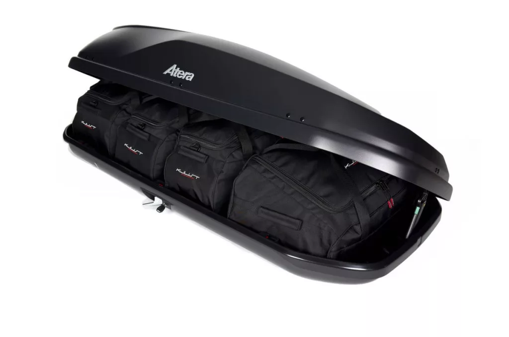 A Kjust utazótáska szett úgy van kialakítva, hogy maximálisan kihasználja az Atera Casar L tetőbox helyét. A tetőbox helyét akár 30%-kal hatékonyabban is kihasználhatja, mint különböző méretű utazótáskák és válltáskák használata esetén.
