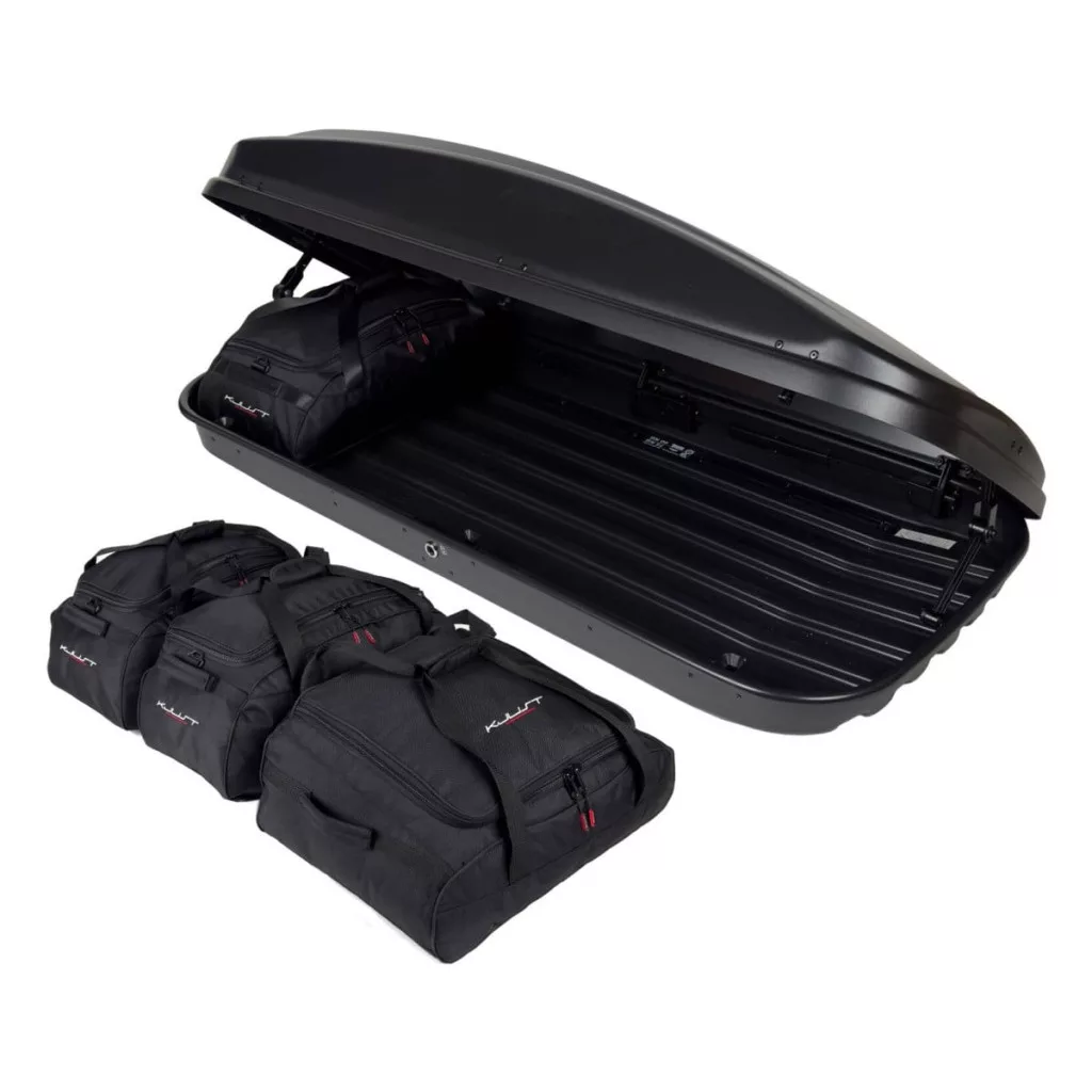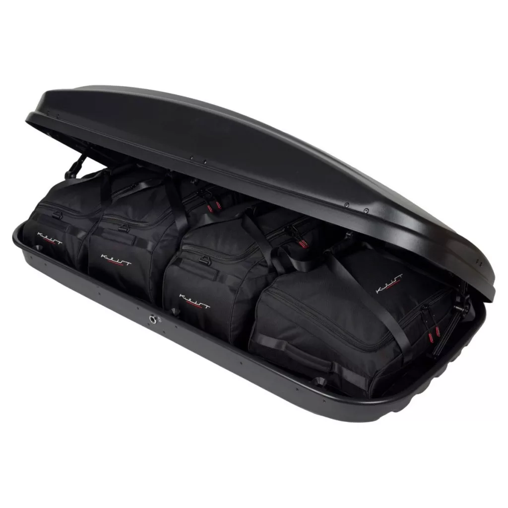 A Kjust utazótáska szett úgy van kialakítva, hogy maximálisan kihasználja a Farad Crub N18 tetőbox helyét. A tetőbox helyét akár 30%-kal hatékonyabban is kihasználhatja, mint különböző méretű utazótáskák és válltáskák használata esetén.
