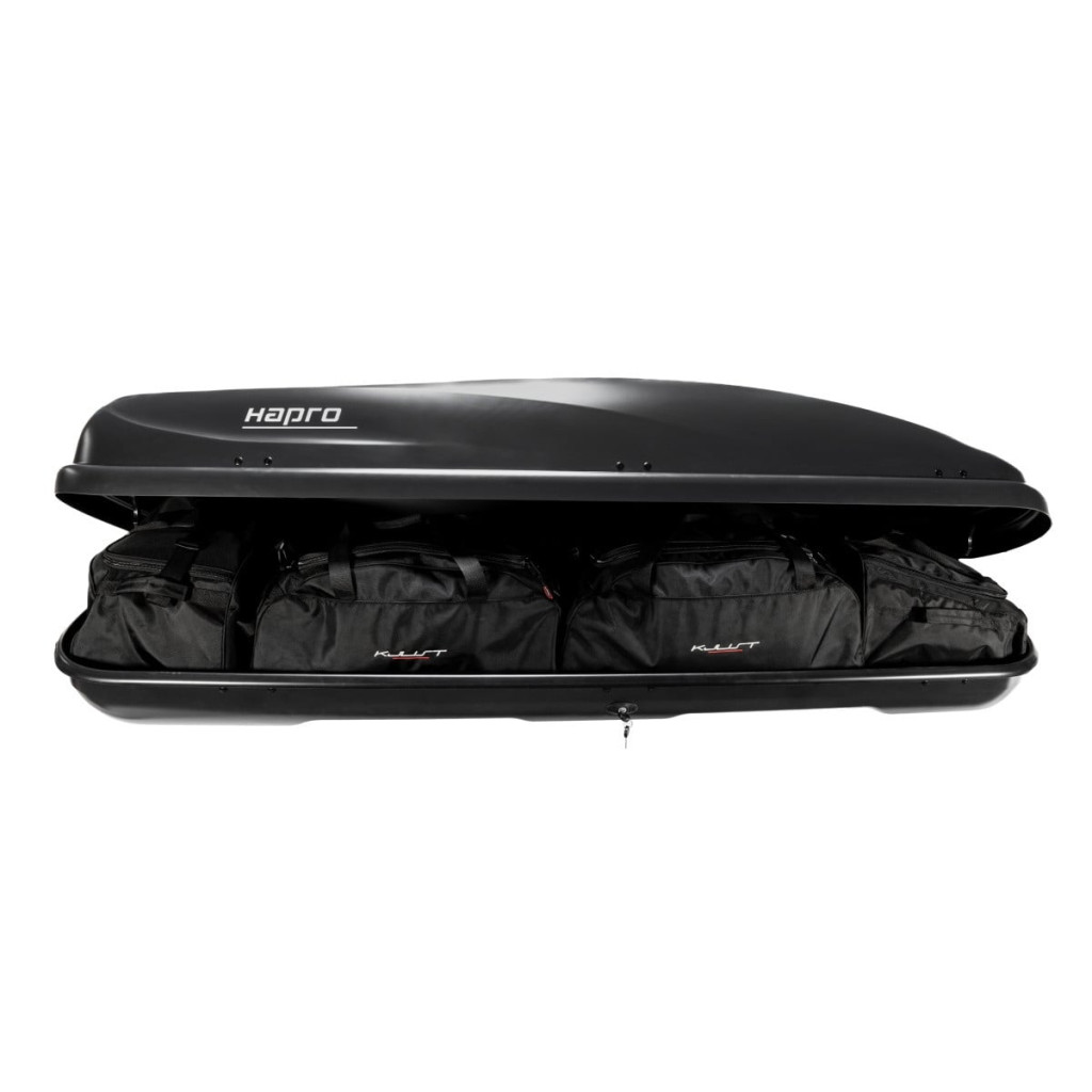 A Kjust utazótáska szett úgy van kialakítva, hogy maximálisan kihasználja a Hapro Cruiser 10.8 tetőbox helyét. A tetőbox helyét akár 30%-kal hatékonyabban is kihasználhatja, mint különböző méretű utazótáskák és válltáskák használata esetén.