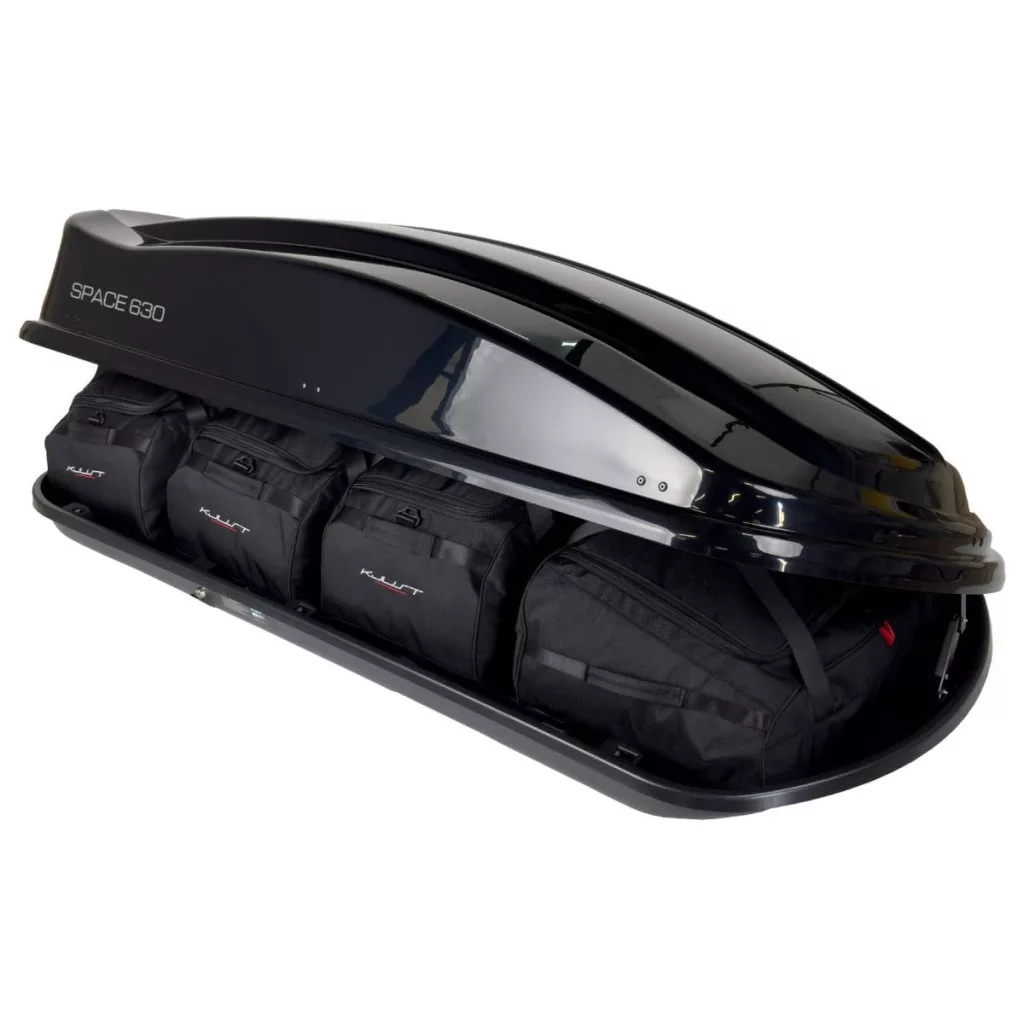A Kjust utazótáska szett úgy van kialakítva, hogy maximálisan kihasználja a Levup Space 630 tetőbox helyét. A tetőbox helyét akár 30%-kal hatékonyabban is kihasználhatja, mint különböző méretű utazótáskák és válltáskák használata esetén.