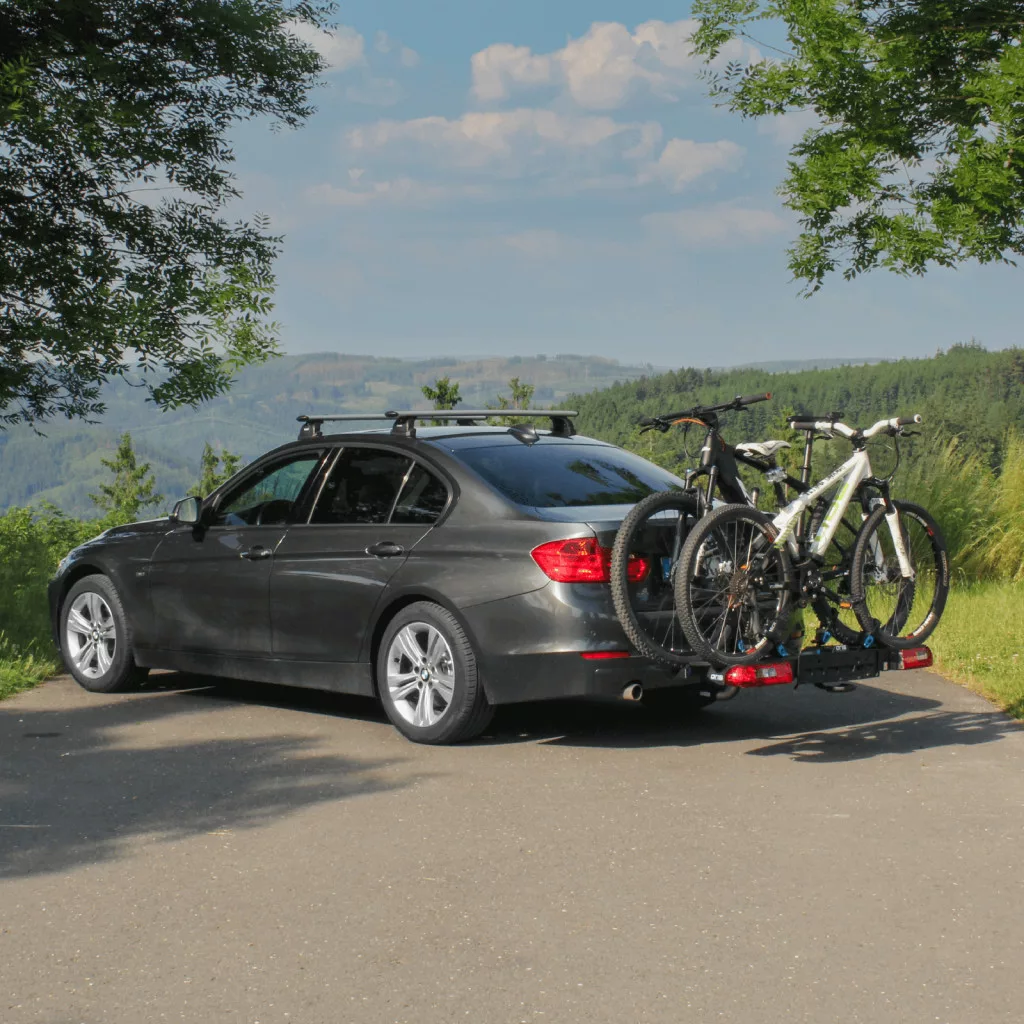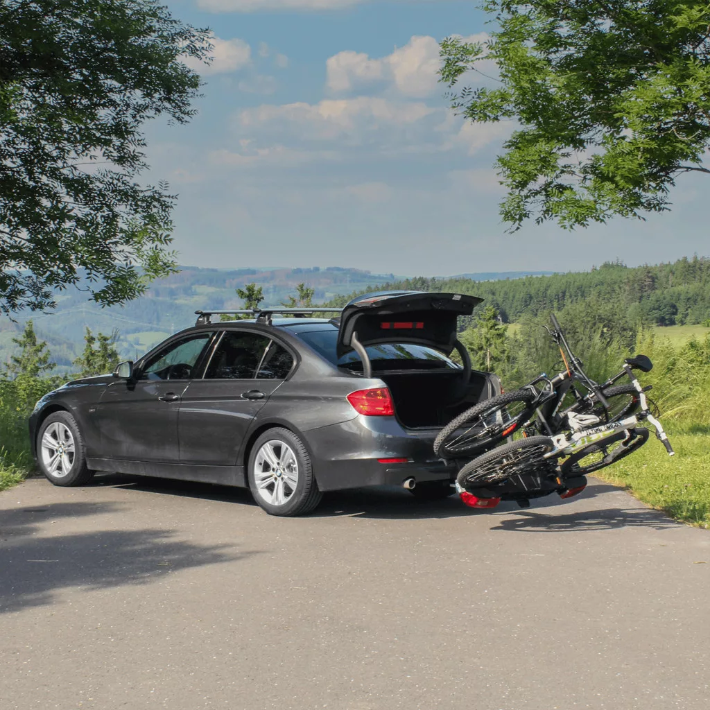A lábpedálos összecsukó mechanizmus lehetővé teszi a hozzáférést a legtöbb autó csomagtartójához, még akkor is, ha a kerékpárok kerékpár-tartóra vannak szerelve.