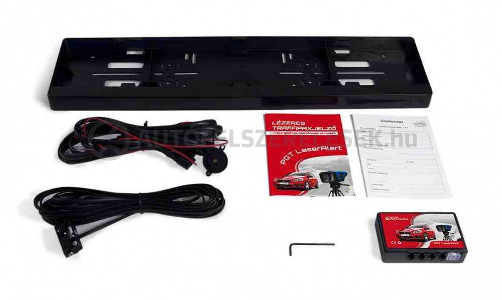 A rendszámtábla keretbe épített érzékelővel ellátott, szivargyújtóról működtethető PGT LaserAlert lézeres traffipaxjelző nagyon könnyen és teljesen rejtett módon felszerelhető az autóra.