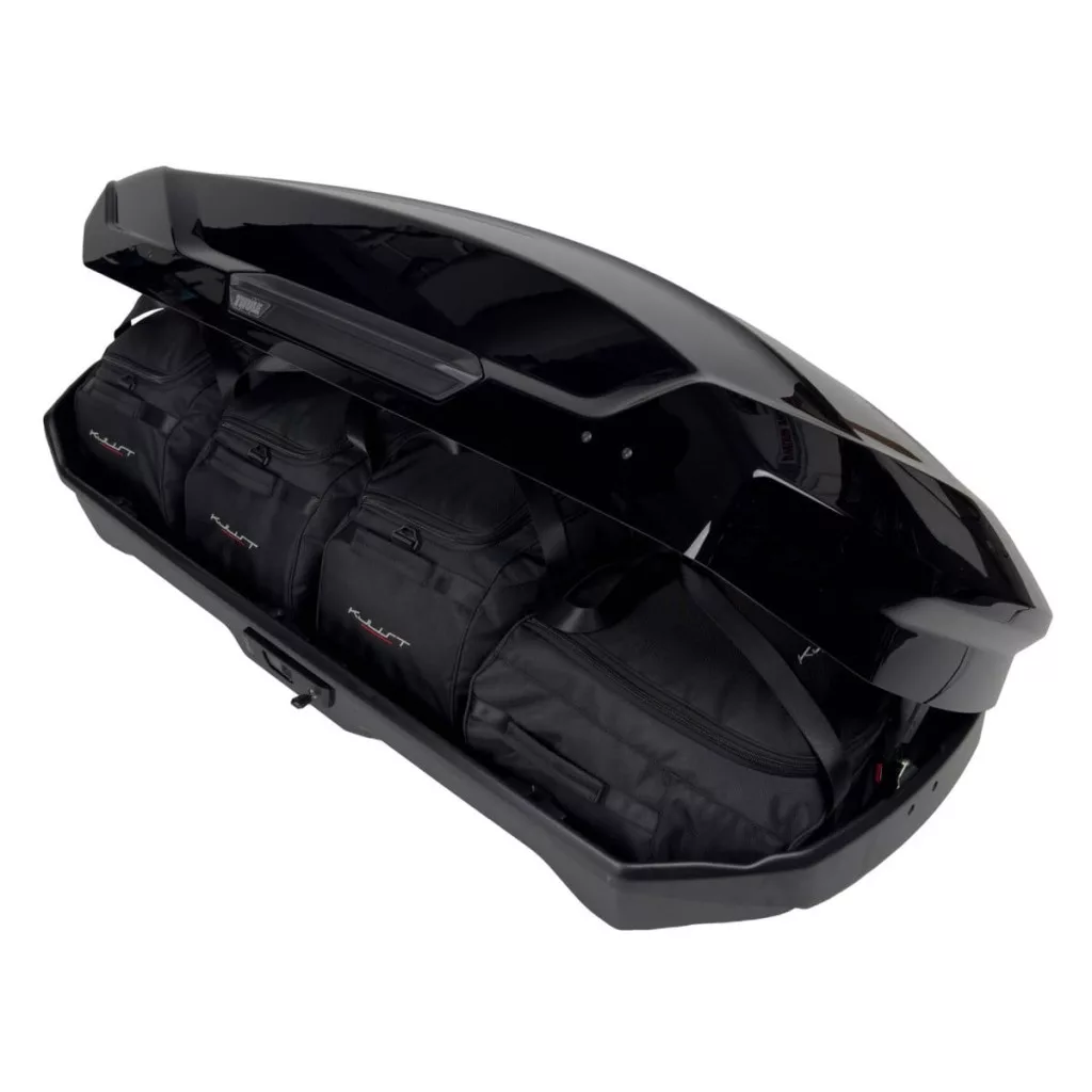 A Kjust utazótáska szett úgy van kialakítva, hogy maximálisan kihasználja a Thule Motion 3 M tetőbox helyét. A tetőbox helyét akár 30%-kal hatékonyabban is kihasználhatja, mint utazótáskák és különböző méretű táskák használata esetén.